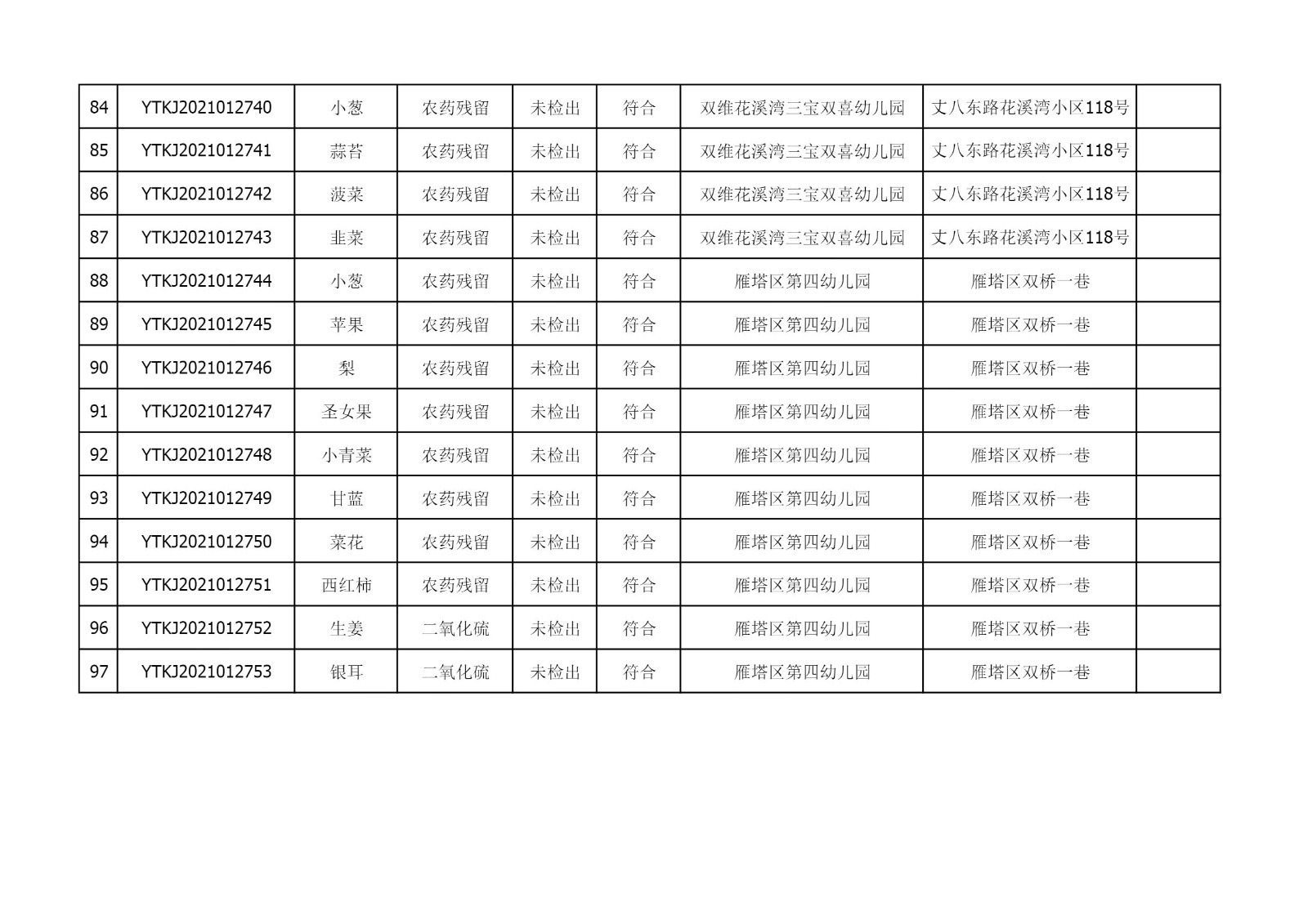 2021年5月27日雁塔区幼儿园及小饭桌快检效果公示