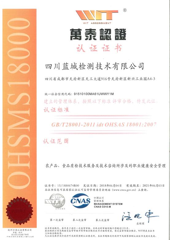 农产品质量清静检测机构审核及格证书CATL